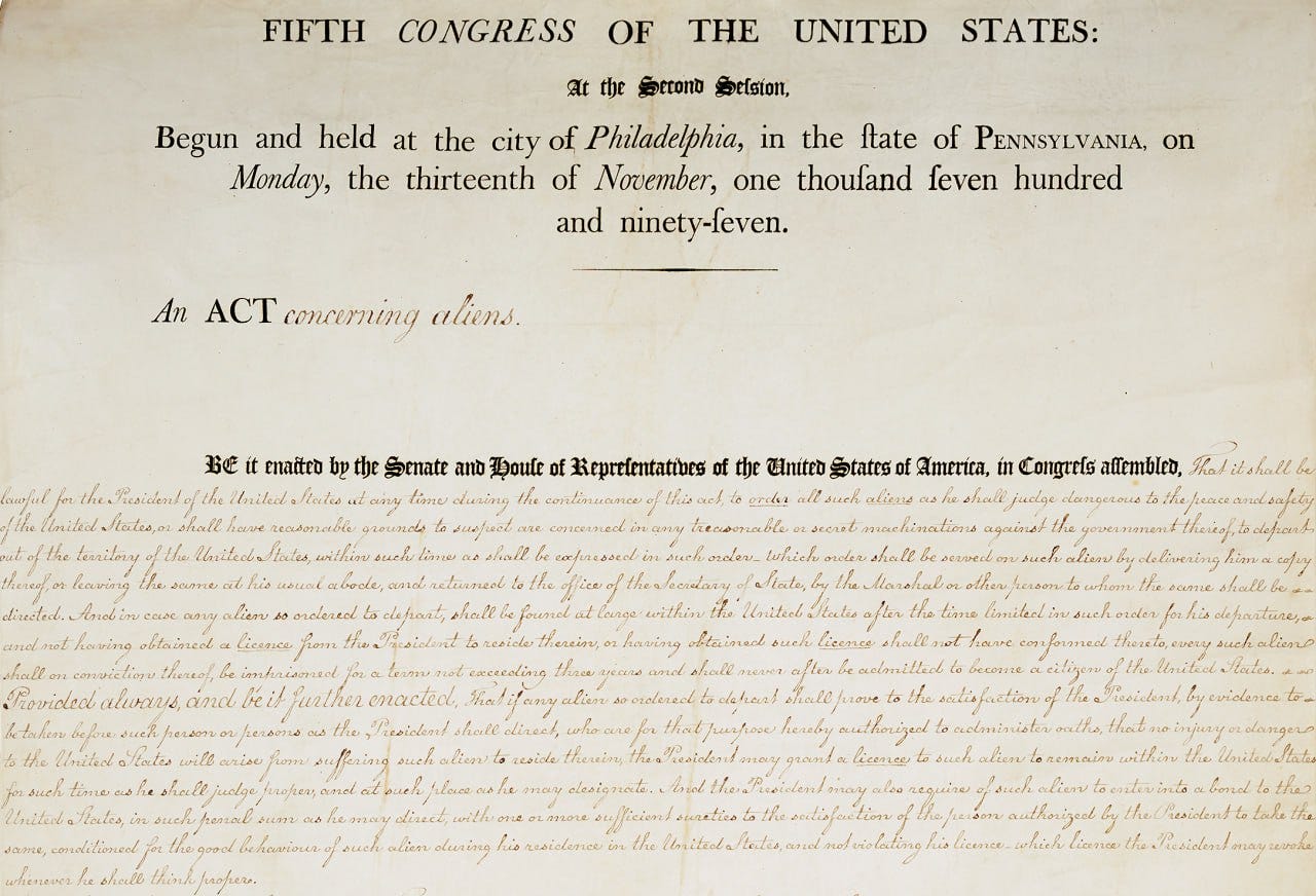 🔹 Ο νόμος του 1798 δίνει στον εκάστοτε πρόεδρο την εξουσία να διατάσσει μαζικές απελάσεις ξένων υπηκόων σε περιόδους πολέμου, όμως το δικαστήριο αποφάνθηκε ότι η τρέχουσα κατάσταση δεν πληροί τα κριτήρια πολεμικής σύγκρουσης που απαιτεί ο νόμος.