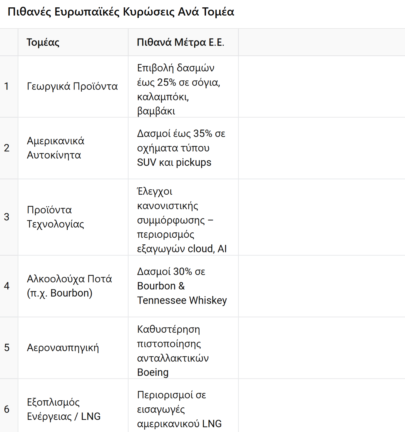 Η Ε.Ε. ετοιμάζει ΑΝΤΙΜΕΤΡΑ στους δασμούς 20% των ΗΠΑ στα ευρωπαϊκά προϊόντα