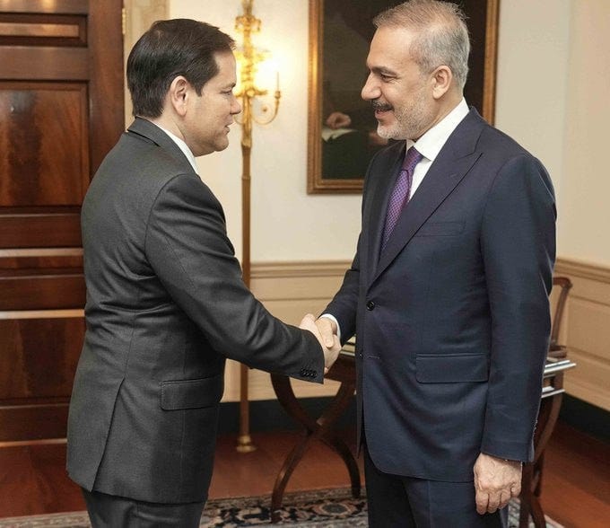 Συνάντηση μεταξύ του Αμερικανού Υπουργού Εξωτερικών Μάρκο Ρούμπιο και του Τούρκου Υπουργού Εξωτερικών Χακάν Φιντάν.