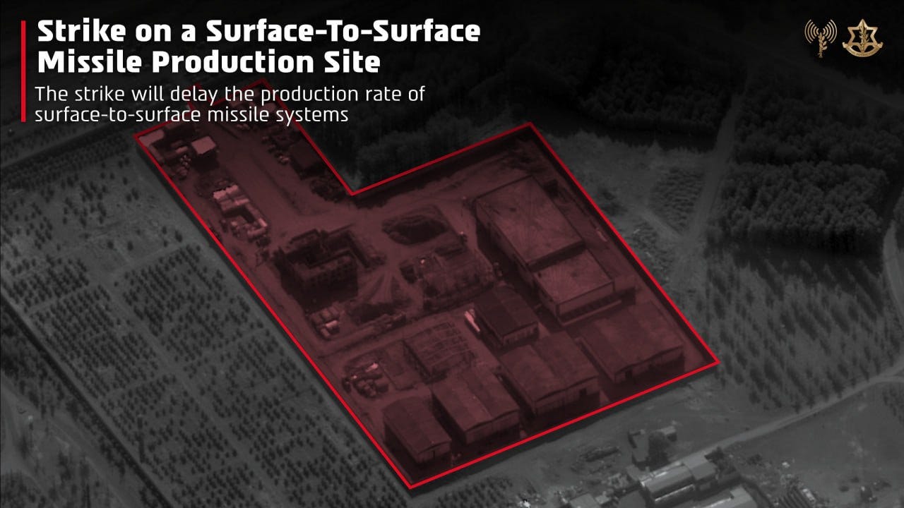 «Κατόπιν του εκτεταμένου κύματος επιθέσεων που πραγματοποιήθηκε νωρίτερα σήμερα σε υποδομές που ανήκουν στη Δύναμη Κουντς, τους Φρουρούς της Επανάστασης (IRGC) και τον ιρανικό στρατό στην Τεχεράνη, στοχοποιήθηκαν πολυάριθμες εγκαταστάσεις παραγωγής όπλων σε ολόκληρο το Ιράν», ανέγραψε ο IDF (Ισραηλινός Στρατός).
