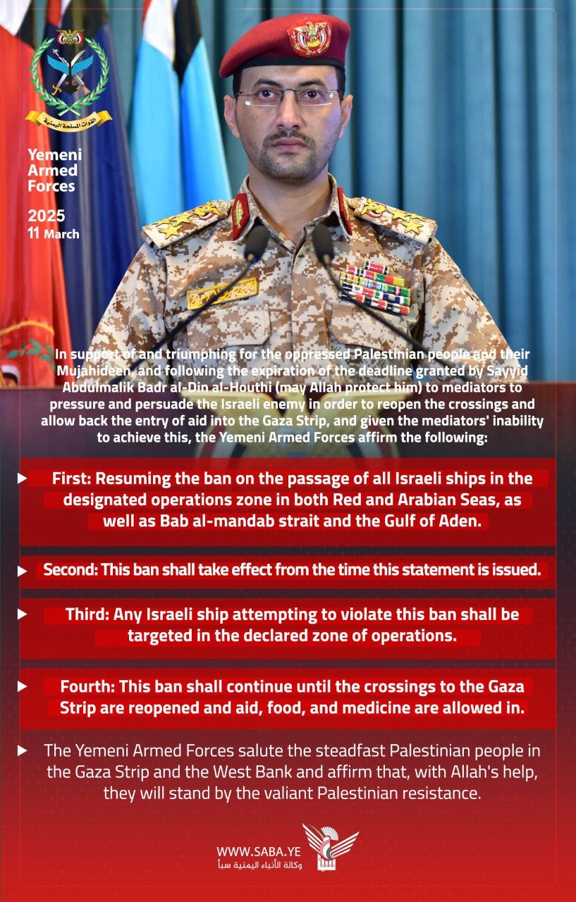 Οι Χούθι της Υεμένης ανακοινώνουν την ΕΠΑΝΕΝΑΡΞΗ ΕΠΙΘΕΣΕΩΝ σε ισραηλινά πλοία στην Ερυθρά Θάλασσα, την Αραβική Θάλασσα και το στενό Bab al-Mandab