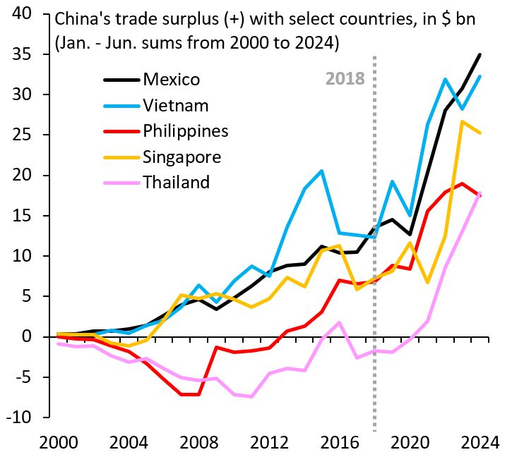 ▪️ Το μερίδιο των χωρών και περιοχών του Παγκόσμιου Νότου στις εξαγωγές της Κίνας ($1,67 τρισεκατομμύρια) έχει ξεπεράσει αυτό των κορυφαίων βιομηχανικών χωρών ($1,4 τρισεκατομμύρια).