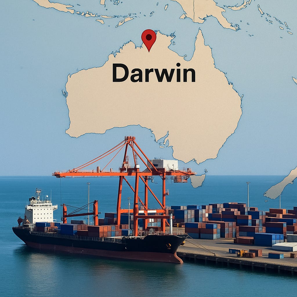 Το λιμάνι Darwin, στην Βόρεια Επικράτεια της Αυστραλίας, είναι πύλη προς την Ασία, διακινώντας 4,5 εκατομμύρια τόνους φορτίου και υποστηρίζοντας έργα πετρελαίου και φυσικού αερίου, ενώ βρίσκεται απέναντι από σημαντική στρατιωτική βάση ΗΠΑ-Αυστραλίας.