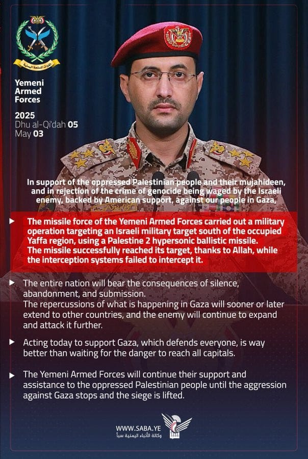 Ανακοίνωση των Χούθι για χρήση υπερηχητικού βαλλιστικού πυραύλου “Palestine 2”