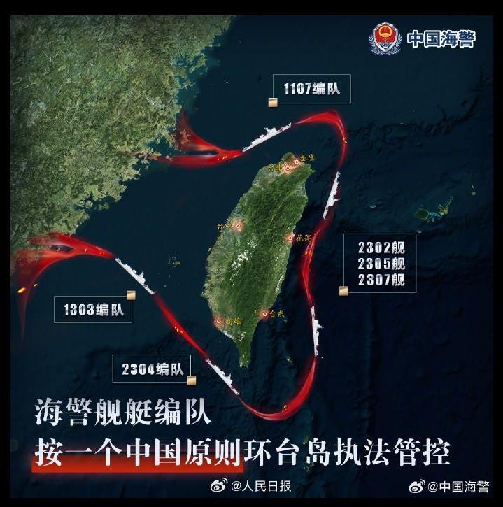 Ο Λαϊκός Απελευθερωτικός Στρατός (PLA) διεξάγει στρατιωτικές ασκήσεις γύρω από την Ταϊβάν για την υπεράσπιση της κυριαρχίας και της εδαφικής ακεραιότητας της Κίνας