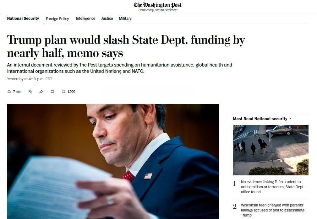 Προτείνεται η περικοπή του προϋπολογισμού του Στέιτ Ντιπάρτμεντ και της USAID σχεδόν κατά το ήμισυ.