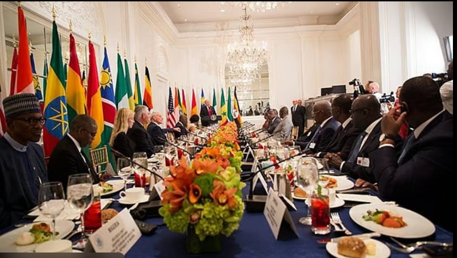 Κατά τις συνομιλίες της Τετάρτης, ο Τραμπ ανακοίνωσε μεταστροφή της αμερικανικής πολιτικής προς την Αφρική «από τη βοήθεια στο εμπόριο», ισχυριζόμενος ότι «μακροπρόθεσμα αυτό θα είναι πολύ αποτελεσματικότερο, βιώσιμο και επωφελές από οτιδήποτε άλλο θα μπορούσαμε να κάνουμε μαζί».